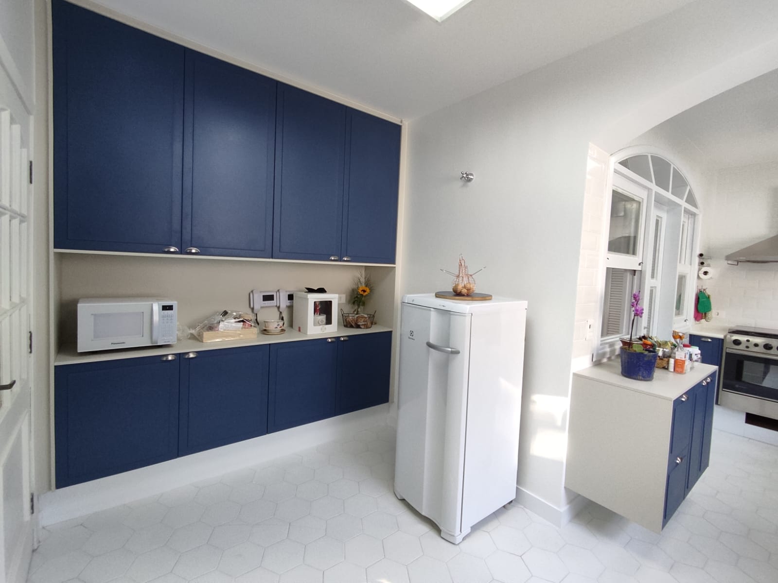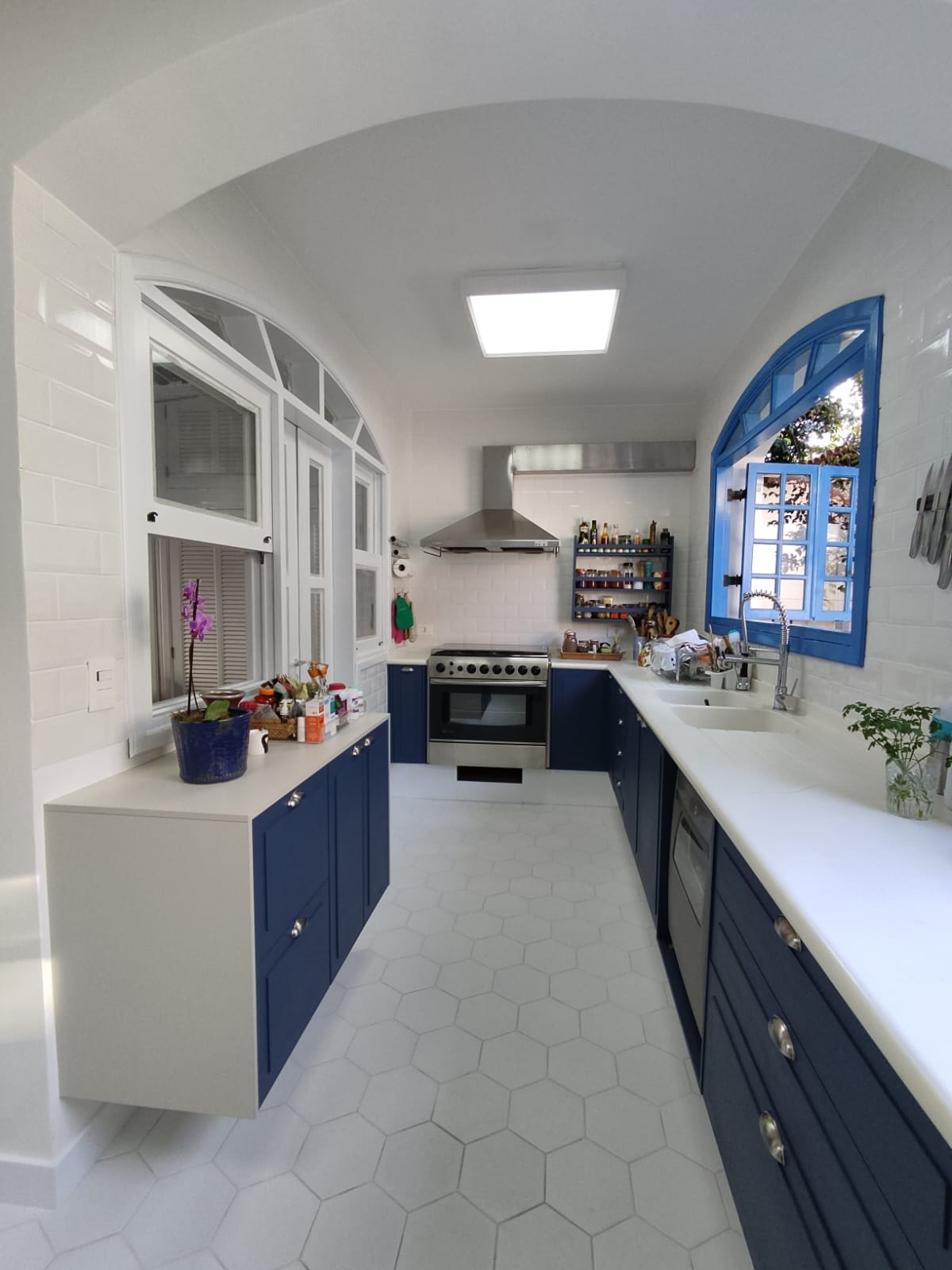 A cor azul está associada a tranquilidade, leveza e paz, por conta disso, tons de azul são muito usados na decoração de diferentes ambientes da casa. Se você busca uma cozinha mais clean, moderna e que passe a sensação de bem-estar, recomendamos utilizar o armário de cozinha azul.  Uma das grandes vantagens de investir na decoração com armário de cozinha azul é que essa cor pode ser encontrada em várias tonalidades, o que facilita na hora de definir um estilo para o ambiente.  Além disso, o azul também é uma cor fácil de combinar com diferentes outras cores, ou seja, se você quer colocar mais personalidade na sua decoração ou gosta de um ambiente mais colorido, é sim possível combinar o armário de cozinha planejado azul com outras cores em detalhes do ambiente como no caso desta linda cozinha onde combinamos o azul com o off-white no tamponamento dos móveis deixando ainda moderno e clean o ambiente. Nossa gratidão a estes clientes especiais que nos escolheram para deixar o coração da casa ainda mais linda!